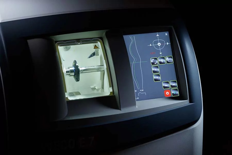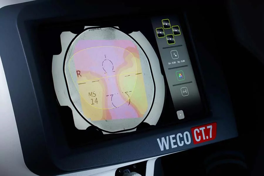 A facetadora visionix WECO E7 utiliza o poder da pré-visualização em 3D e o inteligente software TrueFit™ para lhe permitir visualizar o seu trabalho com um nível de precisão absoluta.